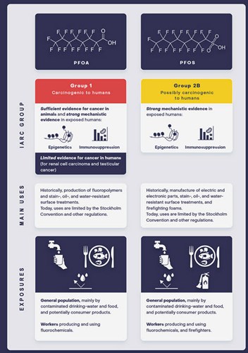 The group determined perfluorooctanoic acid (PFOA) to be carcinogenic to humans (Group 1) and perfluorooctanesulfonic acid (PFOS) as possibly carcinogenic to humans.